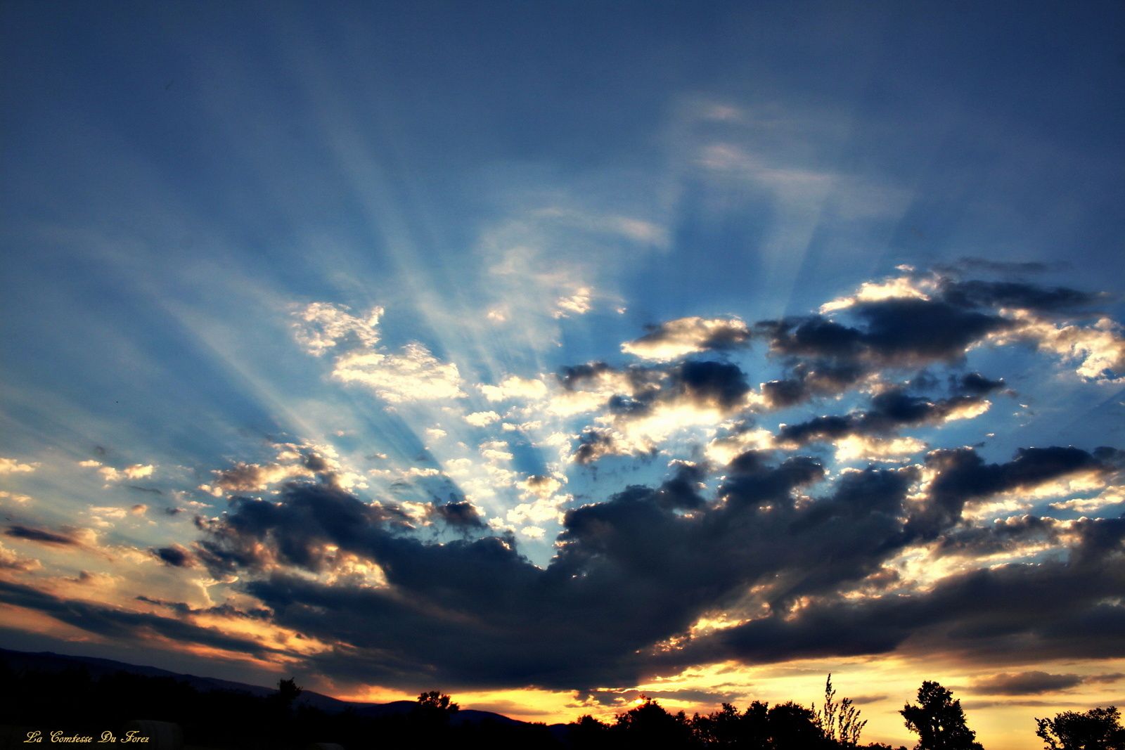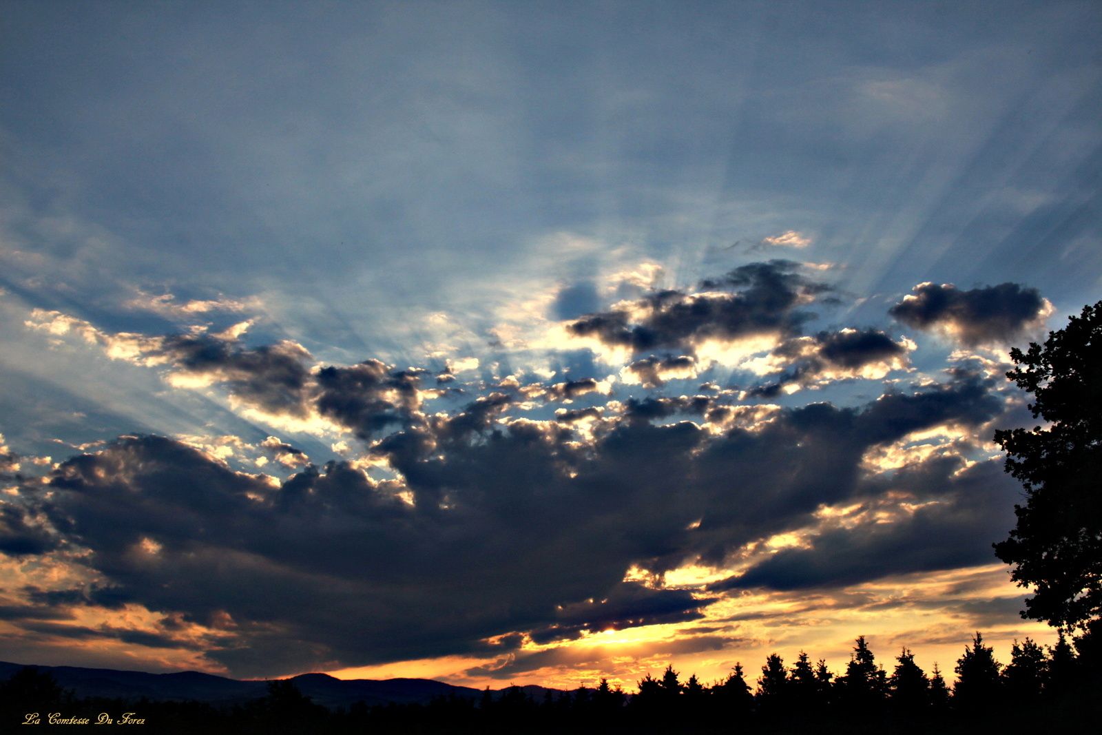 Coucher de soleil sur Savigneux (42600, Loire)