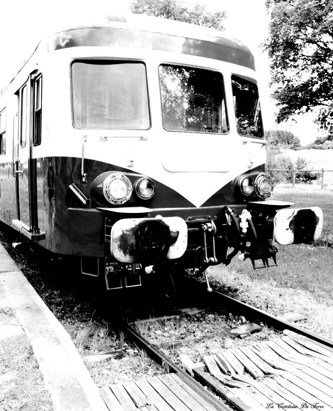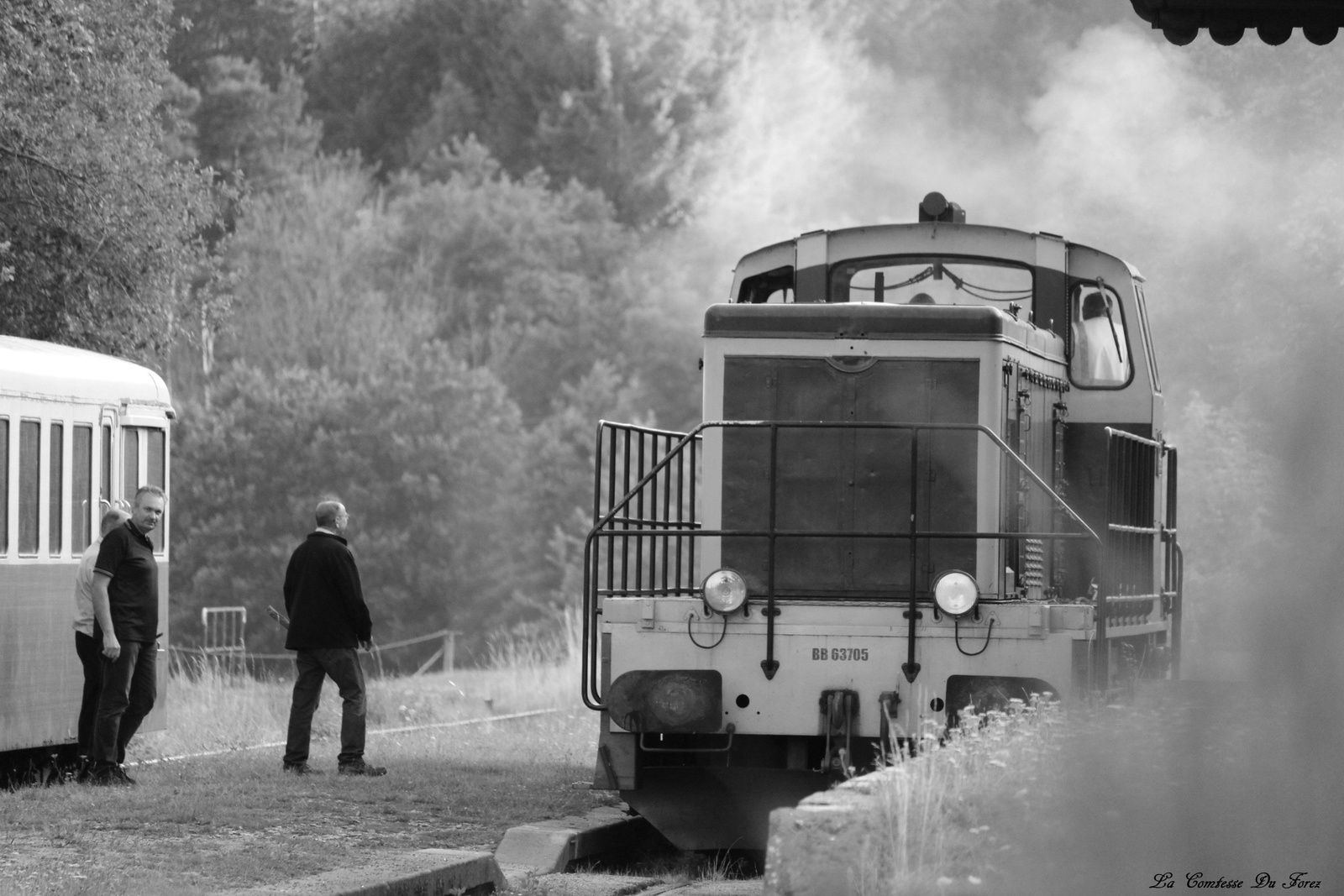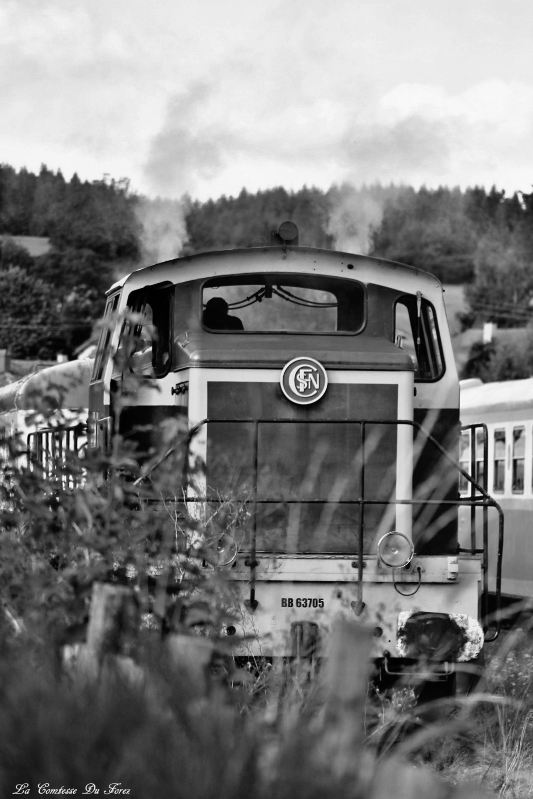 J'ai testé le Chemin de Fer du Haut-Forez un train touristique, typiques des années 50. L'équipe qui nous accompagne le temps de ce voyage est formidable et on sent que ce sont des gens passionnés par les trains. Je les remercie de m'avoir autorisé à voyager à l'avant du train pour réaliser mes photos. Convivialité est le mot que j’emploierais pour qualifier cet après-midi.